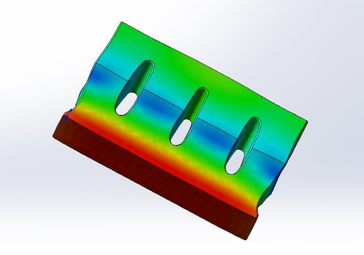 超聲波模具制作前,要用軟件專(zhuān)門(mén)頻率模擬測試,保證超聲波模具的發(fā)力跟頻率效果,下圖是15khz超聲波模具平模,尺寸280*45mm,超聲波模具頻率發(fā)力效果(見(jiàn)下圖)。