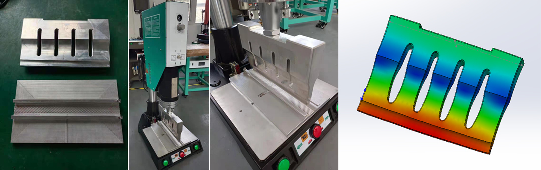 30cm尼龍魔術(shù)貼搭接固定超聲波接長(cháng)模具頻率15khz,焊接尺寸:300*10mm,配套3200w超聲波塑料焊接機,端面出齒,焊接后產(chǎn)品牢固長(cháng)時(shí)間使用不脫落,我司專(zhuān)業(yè)生產(chǎn)銷(xiāo)售多功率超聲波焊接機,同時(shí)定制超聲波模具可以配套國內外各品牌超聲波焊接機,設備有大量現貨供應,超聲波模具工裝交貨周期為3天。